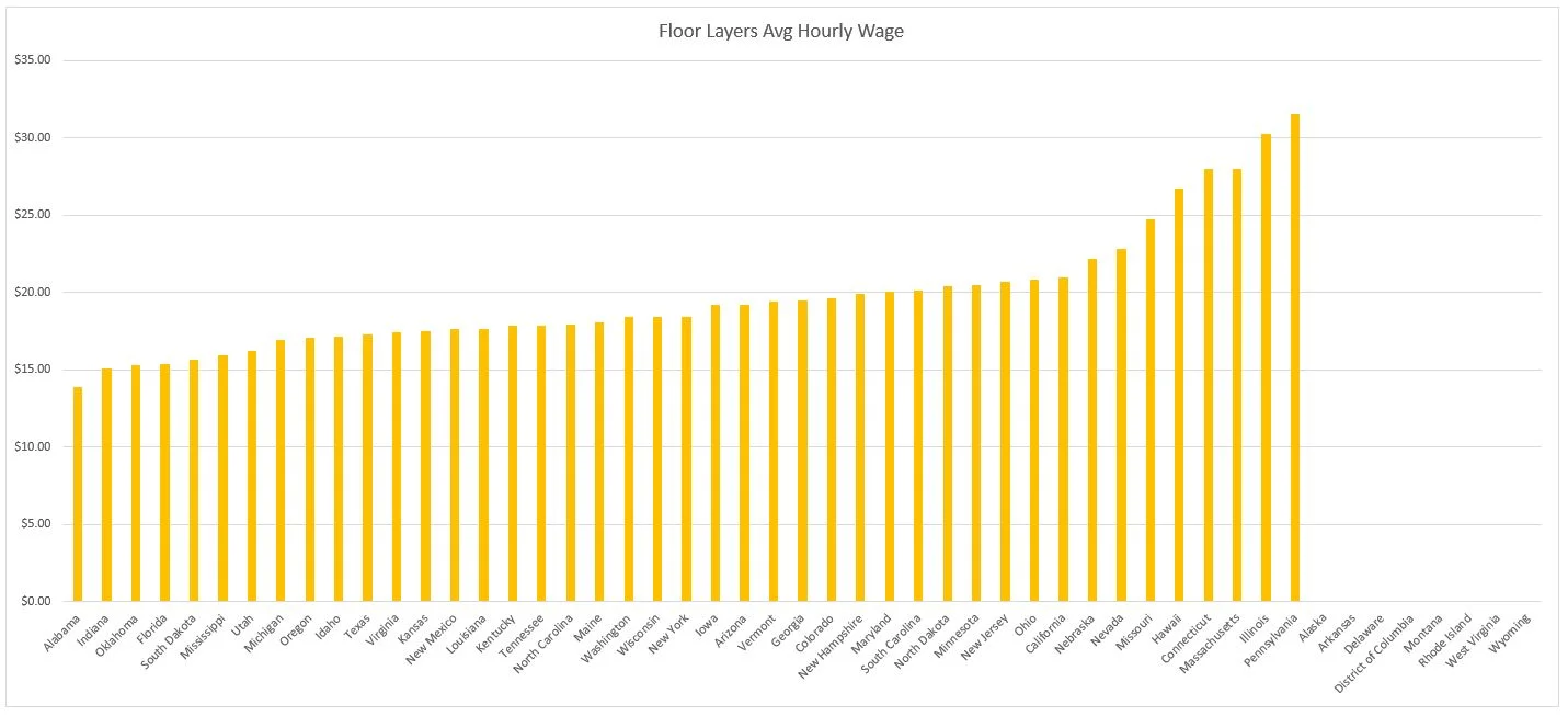 Graph of Average Hourly Wage of Floor Layers, by State